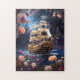Uma imagem divertida da vitória do HMS, Lord Nelsons Ship Jigsee quebra-cabeça. Viajando pela galáxia com planetas e começando no céu.