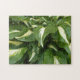 Esta foto apresenta um close-up de uma massa de folhas de focinho verde e branco.