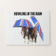 Puzle 2 Basset Hounds with England Flag Umbrella Slogan Howling in the Rain