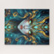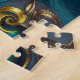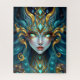 A mesmerizing fantasy portrait of a teal-skinned goddess with hypnotic neon spiral eyes. Her head is adorned with intricate golden swirls and glowing turquoise gems, creating a visually rich and complex puzzle experience for fantasy art enthusiasts.