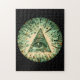 Este quebra-cabeça apresenta uma ilustração única, legal e engraçada do símbolo Illuminati reproduzido no estilo e cores da camuflagem.