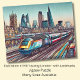 Ilustração de um comboio de alta velocidade que sai de Londres com vários marcos de Londres no fundo, Quebra-cabeça - veja a minha loja para mais presentes de excelente