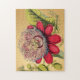 Quebra-cabeça Ilustração Dourada Vermelha do Passionflower Vinta