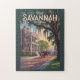 Savannah retro vetor viagem design. Savannah, Geórgia, é uma cidade histórica do sul conhecida pelas suas ruas de carvalho, arquitetura de tamanduá e charme costeiro.