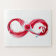 Símbolo infinito do fluxo contínuo de vinho tinto que entra em vidro de vidro sobre fundo branco.