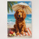 An elegant Irish Red Setter enjoying a warm beach setting with tropical fruits and ocean views. The painterly style enhances its graceful look with a vibrant coastal feel.