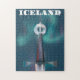 Islândia Espada medieval sob os nortes à noite de poster de viagens.