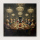 Um elegante encontro se desenrola em um castelo real, onde cães antropomórficos fazem esplêndidas coroas enquanto jantam em estilo. Um maravilhoso candelabro de cristal lança um brilho quente sobre as festividades, criando uma cena inesquecível de realeza canina.