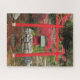 A challenging puzzle that features the photo image of a Japanese garden pond with red torii gate and ornamental shrine. Fun for the whole family! Photo: Point Defiance Park Japanese Garden