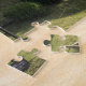 Linda paisagem de Ochin Yama Hill sob o céu azul com nuvens de outono no Jardim Hama Rikyu histórico, Jardim do Palácio Imperial de Hama em Tóquio, Japão.
