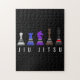 Quebra-cabeça jiu Jitsu treinando xadrez, presente com texto.
