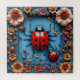 Joaninhas coloridas que estão sentadas em uma superfície azul com flores