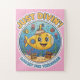 A charming and whimsical cartoon illustration featuring a happy yellow submarine exploring the ocean floor. The design is circled by the playful text: "JUST DIVIN'!" and "LOOKIN' FOR TREASURE!". Surrounded by friendly fish, jellyfish, seaweed, and sunken treasure chests, this artwork perfectly captures the excitement of underwater adventure and exploration. Ideal for children's puzzles and anyone who loves sea life and discovery.
