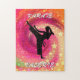 Quebra-cabeça Karate Girl Kick Stars and Swirls Retro