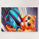 Este quebra-cabeça tem um gatinho dirigindo um carro fotografado nele.