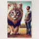 Este quebra-cabeça de fantasia tem um gatinho grande e um homem fotografado nele.