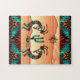 Aproveite este Quebra-cabeça único sudoeste de Kokopelli! Ele apresenta dois Kokopelli sudoeste tocando flauta e dançando em volta de um cacto no deserto Sob o Sol no Deserto...Cercado por um fundo turquesa, laranja e preto! Design De Arte Original Pelo Artista Kerry Miller.