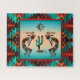 Aproveite este Quebra-cabeça único "Um dos tipos" do sudoeste de Kokopelli! Ele apresenta dois Kokopelli sudoeste tocando flauta e dançando ao redor de um cacto sob o sol em um fundo de turquesa e sunset laranja... cercado por uma Turquesa, Orange e Black Border! Design De Arte Original Pelo Artista Kerry Miller.