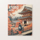 Kyoto Japan autumn temple scene featuring traditional Japanese architecture, a Buddhist temple setting, and a kimono figure in a calm zen garden mood. This Kyoto travel illustration highlights Japanese culture, Kyoto sightseeing, and Japan travel atmosphere with warm autumn colors and fall foliage. Clean minimalist illustration styling with a modern graphic look keeps the temple architecture and Japanese landscape scenery clear and recognizable. A versatile Kyoto Japan travel design for postcard, poster, puzzle, and magnet formats, suited to vintage travel style searches and Japandi aesthetic interiors. Use as Kyoto landmark scenery, Japanese temple scenery, and autumn landscape travel theme—timeless Kyoto, timeless Japan, classic temple architecture. Text can be edited—add a name, date, or custom message to personalize this design.
