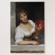 Esta design apresenta uma pintura do artista italiano Eugene de Blaas (1843-1931). Mostra uma bela mulher italiana a vestir a fantasia tradicional, incluindo um espartilho e um vestido baixo. Ela também está vestindo um colar de ouro. A mulher se inclina em uma varanda de pedra, e ela está segurando em sua mão um fã vermelho com um padrão floral. Ela está sorrindo para o espectador com lábios vermelhos, bochechas rosadas e olhos azuis pensativos. Ela tem cabelo castanho que está em coalhada. Ela também parece estar vestindo brincos de forro de ouro. É um retrato atraente de uma tradicional senhora italiana. A arte original foi pintada em 1892.