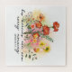 Quebra-cabeça com uma escritura inspiradora de citação retrata um adorável design de arte de jardim de flores com simples flores laranja, rosa e amarelas e folhas verdes, Ele apresenta a Bíblia Verse Lamentações 3:23, "Seus compaixões são novos toda manhã."