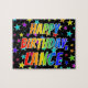 Esta divertida, excitante, quebra-cabeça de quebra-cabeça com tema de aniversário tem a mensagem "HAPPY BIRTHDAY, LANCE" com os personagens que têm um espectro colorido de arco-íris inspirado em um padrão de gradação, além de um campo vivo de estrelas como padrão de fundo. Um quebra-cabeça vibrante como este pode ser usado para enviar cartões de aniversários a alguém chamado Lance. [~Z0000468]