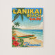 Fuja ao paraíso com este cartão postal da praia Lanikai vibrante. Apresentando canoas despoletantes, palmeiras e ondas de turquesa, esta ilustração tropical captura a beleza serena da praia mais icônica de Oahu.