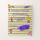 Pílulas e borrachas coloridas engraçadas na página amarela do notebook