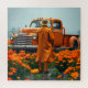 A cor laranja é a cor primária, com caminhão laranja, flores laranja e roupas laranja.