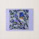 O Bunting do Lázuli é um dos belos guardas a ver. Sua cabeça azul brilhante é brilhante na luz do sol. A imagem é tirada de uma pintura original da artista internacional Jennifer Lake.