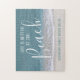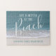 This personalized beach house puzzles is a fun activity to have at your beach or lake home. The background is a beautiful serene photo of turquoise water and white sand. White, hand lettered style text, on top of the photo, reads: Life is better at the Beach. Personalize this puzzle with your family name.