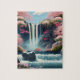 Linda paisagem natural Consistindo em Cascata, Coluna de Flor de Cereja, Rochas e Petais Flores.