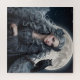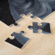 Bonita quebra-cabeça de serra-gigante. © Jigsen Wonderland em Zazzle. Uma bela coruja com cabelos longos e enrolados de cinza, um vestido preto e uma coruja negra.