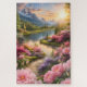 Lindas flores na linhagem do cheio, um caminho que leva a um lago, enquanto o sol se põe atrás de montanhas com capa de neve neste lindo quebra-cabeça de serra-gigante.