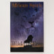 Espírito Africano - Selvagem e Livre. Retrato desenhado manualmente de um leão com uma silhueta no primeiro plano contra o sol de pôr e o cheio noturno das estrelas.