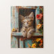 Quebra-cabeça Little Kitten Sleeping in Garden Shed with Bloomin