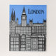 Quebra-cabeça num desenho a preto e branco da linha do horizonte de Londres, Inglaterra