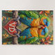 Quebra-cabeça Lovebirds Nuzzling on Carved Valentine's Branch