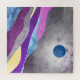 Um belo design de paisagem abstrato com uma lua azul e colinas rolantes coloridas texturizadas em tons de roxo, violeta, azul, ciano e amarelo.