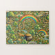 This captivating "Lucky Charm Treasure Hunt Adventure A Seek-and-Find Magical Irish Landscape" jigsaw puzzle transforms the joy of discovery into a playful and immersive treasure hunt. The lush Irish-inspired landscape is filled with hidden charms, including shamrocks, golden horseshoes, pots of gold, and vibrant rainbows. Each intricate detail invites puzzle enthusiasts to engage in a whimsical seek-and-find adventure, blending the thrill of exploration with the rich symbolism of Irish luck and fortune. The vibrant greens, shimmering golds, and magical hues create a visually stunning celebration of charm and folklore, making this puzzle perfect for all ages and occasions.