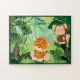 Personalize este quebra-cabeça de safari fofo com o nome do seu filho e o ano no centro das folhas da selva selvagem. Legal presente de crianças da selva com um tigre e macaco divertidos.