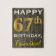 Este simples design de quebra-cabeça apresenta a mensagem "Feliz 67º Aniversário", com o "67º" a ter uma aparência falsa de ouro. Ele também apresenta um nome personalizado, e uma aparência falsa de madeira. Pode ser dado a alguém que comemora o seu sexagésimo sétimo aniversário.