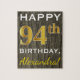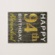 Este simples design de quebra-cabeça apresenta a mensagem "Feliz 94º Aniversário", com o "94º" a ter uma aparência falsa de ouro. Ele também apresenta um nome personalizado e um fundo de aparência falsa de madeira. Pode ser dado a alguém que comemora o seu nonagésimo quarto aniversário.
