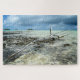 Quebra-cabeça Madeira inoperante no Pacífico sob um céu nebuloso