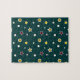 Padrão elegante de Natal sem costura, estrelas coloridas e flocos de neve sobre fundo verde escuro