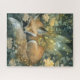 A magical fox sleeping in the forest, family jigsaw puzzle keepsake. A beautiful keepsake to enjoy year after year, perfect for quiet family time, game nights, or as a gift for puzzle lovers, and nature lovers. Soft glowing lights and flowers surround the fox.