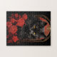 Black Maine Coon cat com flores vermelhas estilo art nouveau