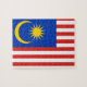 Bandeira da Malásia. A bandeira da Malásia, também conhecida como Jalur Gemilang (Malaio para "Stripes of Glory"), é constituída por 14 listras vermelhas e brancas alternadas ao longo da mosca e um cantão azul com uma crescente e uma estrela de 14 pontos conhecida como Bintang Persekutuan (Estrela Federal). As 14 listras, de largura igual, representam o mesmo status na federação dos 13 estados-membros e do governo federal, enquanto os 14 pontos da estrela representam a unidade entre essas entidades. O crescente representa o Islã, a religião oficial do país; o cantão azul simboliza a unidade das pessoas malaias; o amarelo da estrela e o crescente é a cor real dos governantes malaios.