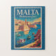 Malta retro vector travel design. Malta is a stunning Mediterranean island nation famous for its turquoise waters, ancient fortresses, and beautifully preserved cities. With a blend of European and Middle Eastern influences, it offers sunny beaches, rich history, and vibrant coastal life.