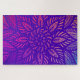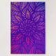 This design features a vibrant, symmetrical mandala pattern with leaf-like shapes radiating from the center. Bold lines and intricate details create a sense of movement and energy. The color gradient shifts from deep pinks and purples to warm oranges and cool blues, all set against a rich purple background. The overall effect is dynamic, eye-catching, and full of artistic flair.